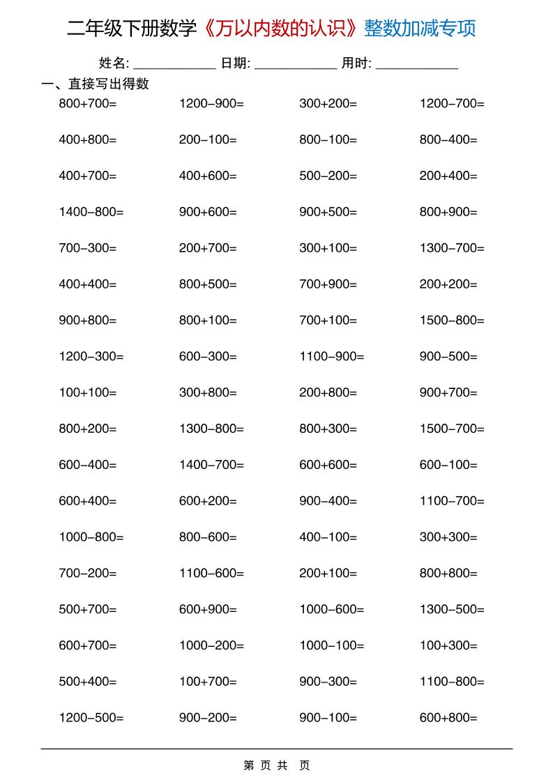 二年级下数学《万以内数的认识》整数加减专项元福7小时前发布关注私信0115二年级下数学《万以内数的认识》整数加减专项此内容为付费阅读,请付费后查看¥0.9黄金会员免费钻石会员免费立即购买您当前未登录!建议登陆后购买,可保存购买订单付费阅读已售 5 ——预览已结束,还剩18页未读——您已获得此文档下载权限,请点击底部下载完整文档 课程下载: 此处内容已隐藏,请付费后查看 © 版权声明文章版权归作者所有,未经允许请勿转载。THE END数学 喜欢就支持一下吧点赞5 分享QQ空间微博QQ好友海报分享复制链接收藏