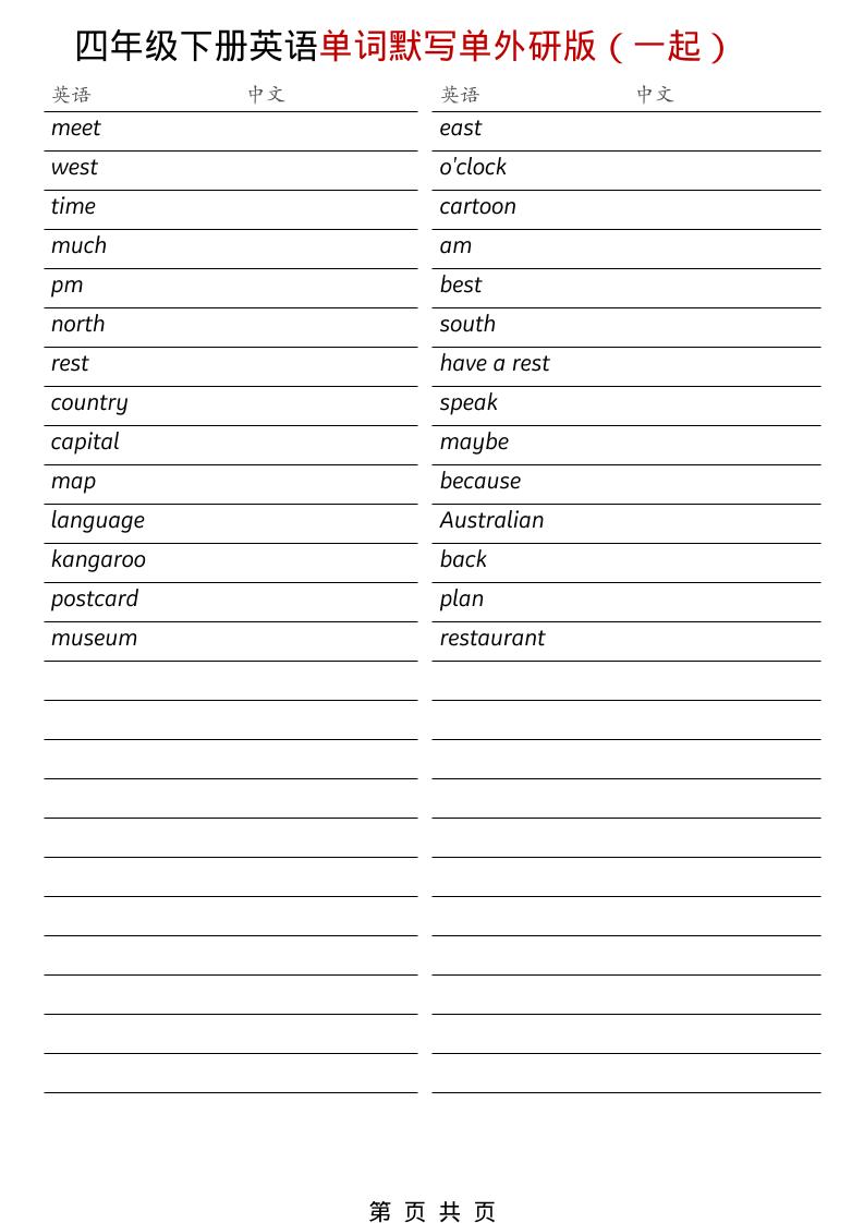 四年级下英语全册单词默写单《外研版(一起)》元福前天发布关注私信084四年级下英语全册单词默写单《外研版(一起)》此内容为付费阅读,请付费后查看¥0.9黄金会员免费钻石会员免费立即购买您当前未登录!建议登陆后购买,可保存购买订单付费阅读已售 4 ——预览已结束,还剩2页未读——您已获得此文档下载权限,请点击底部下载完整文档 课程下载: 此处内容已隐藏,请付费后查看 © 版权声明文章版权归作者所有,未经允许请勿转载。THE END英语 喜欢就支持一下吧点赞4 分享QQ空间微博QQ好友海报分享复制链接收藏